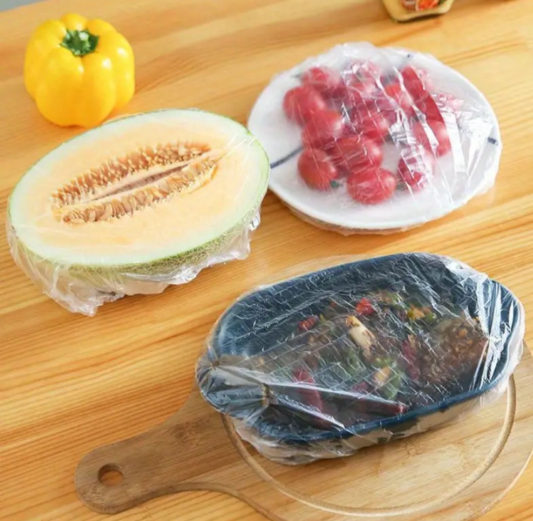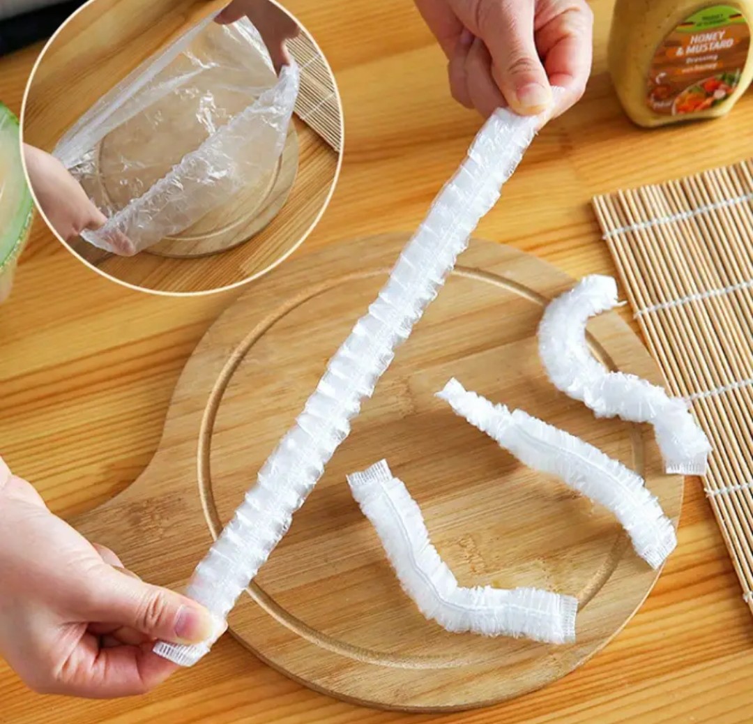 300 Cubiertas Elásticas Reutilizables para Alimentos - Envoltura de Plástico PE Elástica para Frescura, Ajuste Seguro, Esenciales de Cocina Multiusos